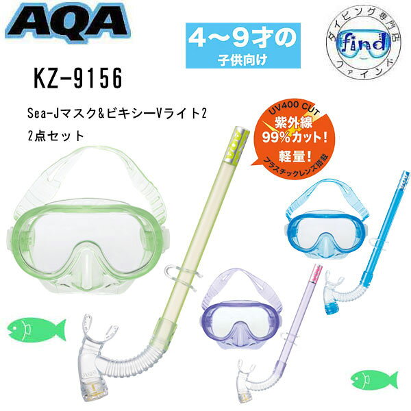 AQA 子供 2点セット <br>シュノーケルセット 4才〜9才 <br>Sea-J マスク <br>&ビキシードVライト2 セット <BR>KZ-9156 KZ9156 安心の日本製 <br>低学年 幼児 子ども 水中ゴーグル <br>新機能 UVカットレンズ搭載 <br>スノーケル