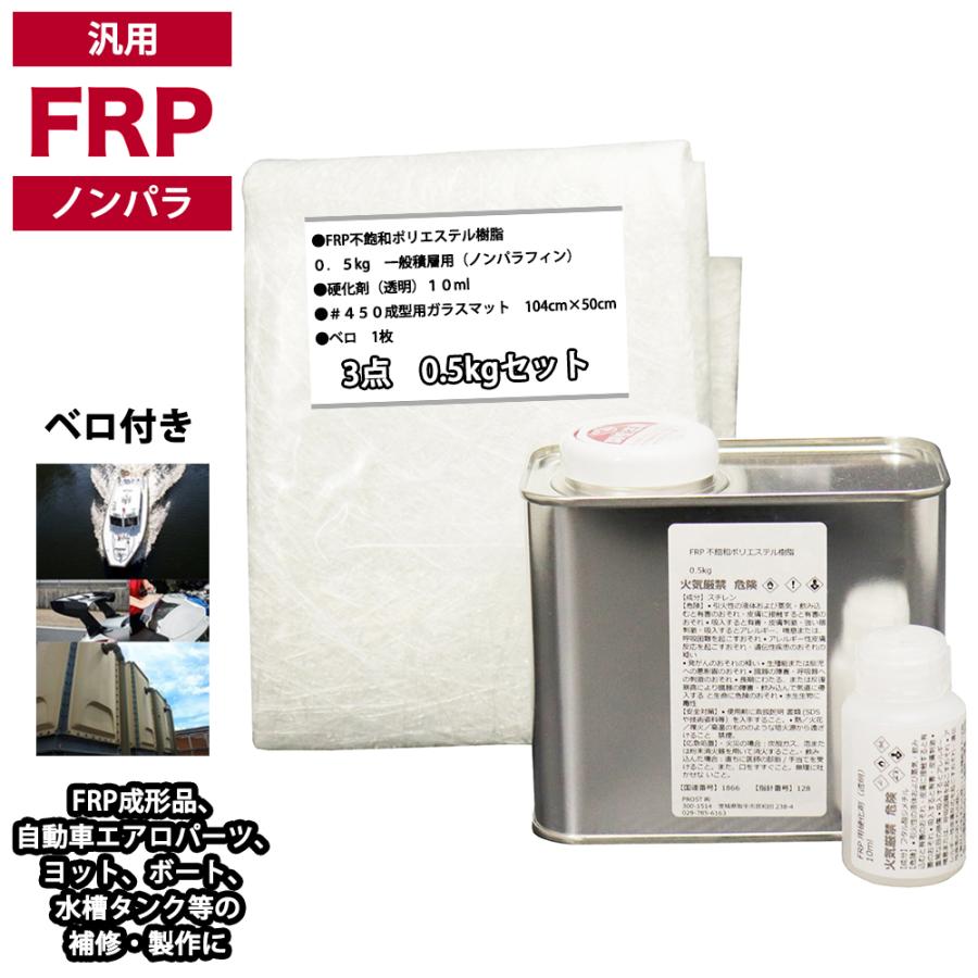 (商品内容)●FRP不飽和ポリエステル樹脂0.5kg 一般積層用(ノンパラフィン)●硬化剤(透明)10ml●#450成型用ガラスマット 104cm×50cm●ベロ 1枚●施工マニュアル<キーワード>FRP補修セットERP補修キットノンパラ