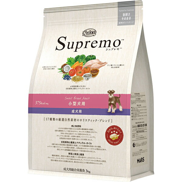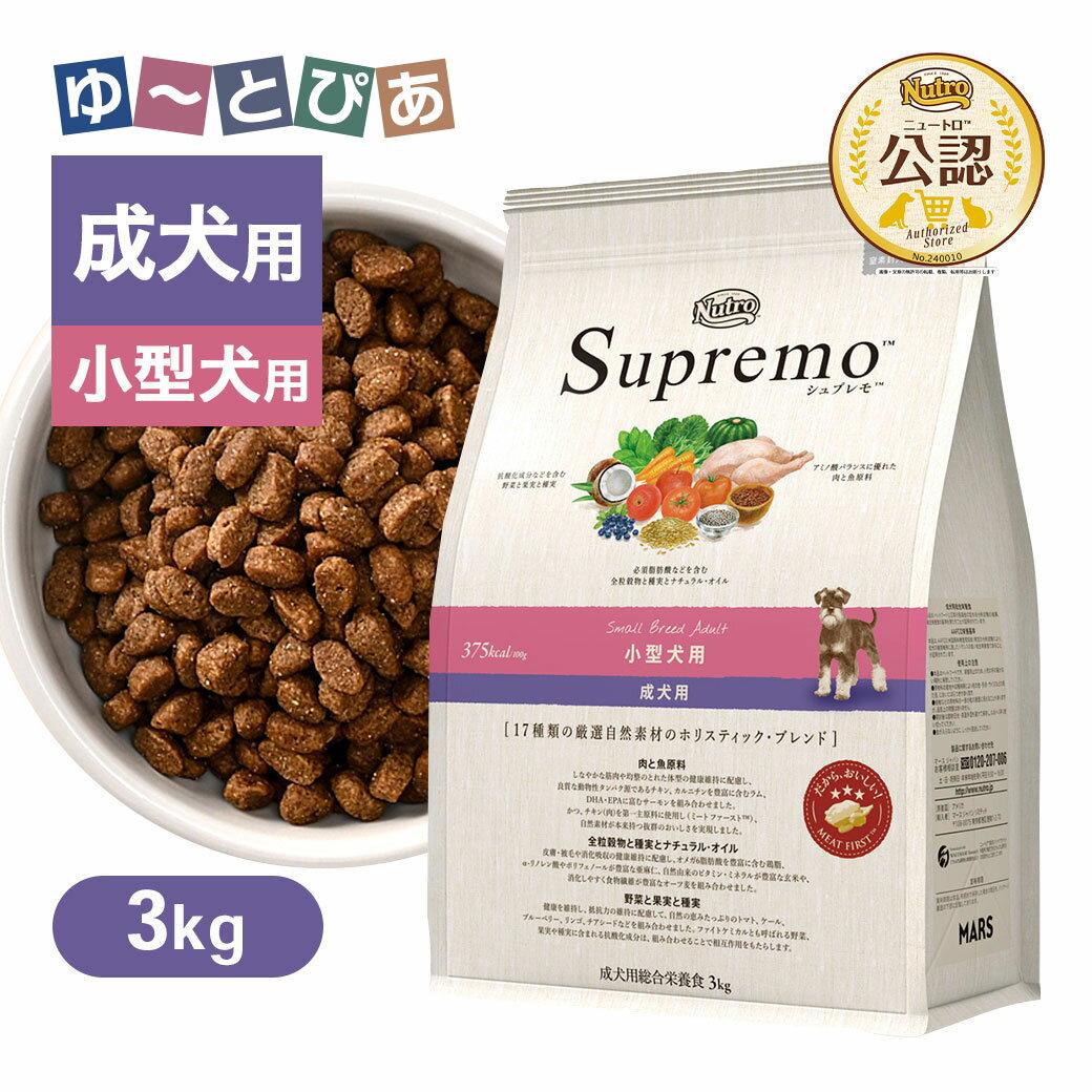 ◇ニュートロ シュプレモ 小型犬用 成犬用 3kg | ドッグフード 小型犬用 シュプレモ 成犬用 ニュートロ 無添加 高品質 3kg 自然素材 栄養バランス 食物繊維 おいしい ペットフード 小粒タイプ プレミアムフード 皮膚 被毛 消化吸収 鶏肉 チキン ミール グルコサミン