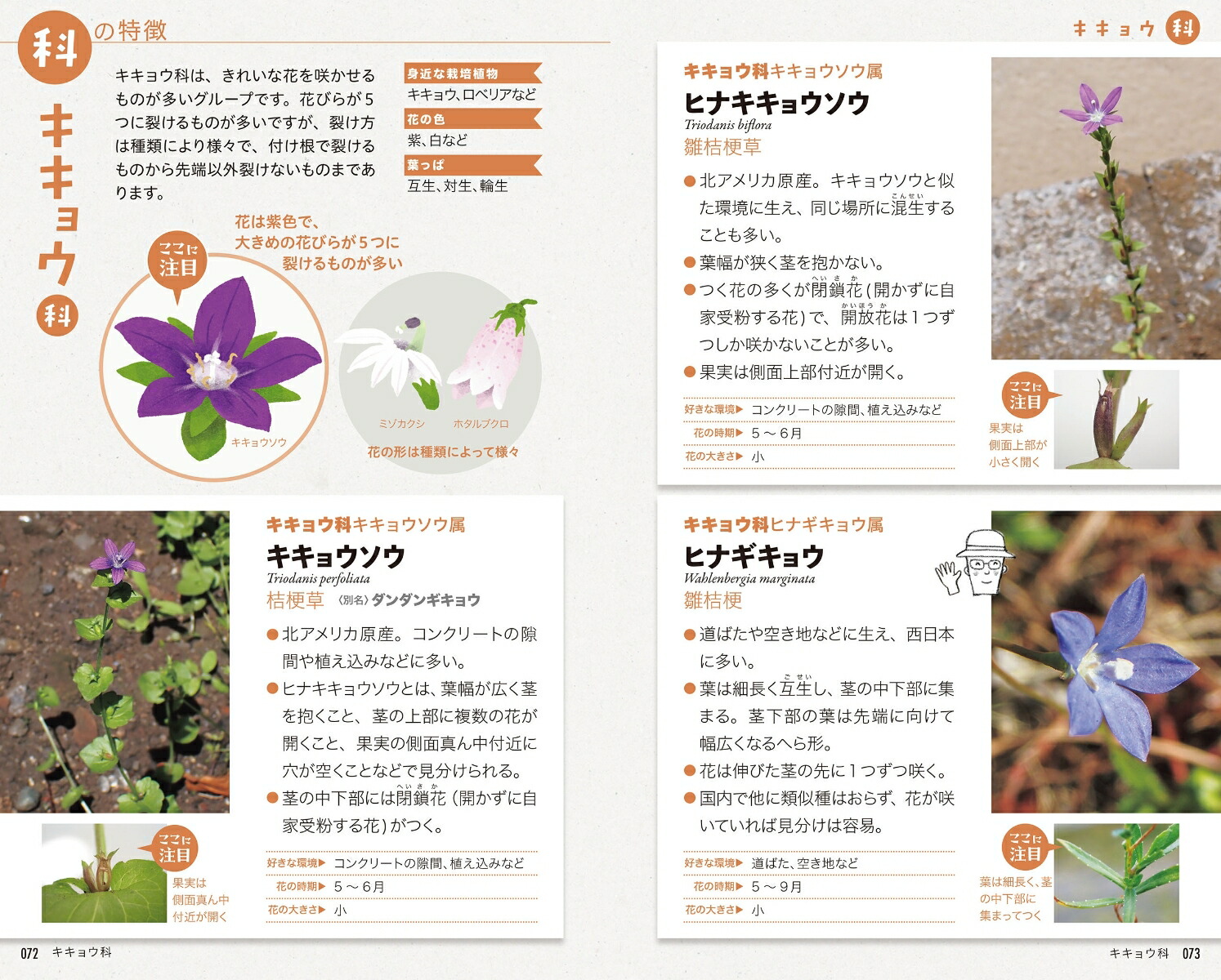 「科」の特徴をつかんで、植物観察がもっと楽しくなる新しい図鑑!「植物の名前を知りたいけど、似た種類が多くて種が絞れない」「植物のどこに注目すればいいのかわからない……」そんな経験はありませんか?本書は、「キク科は、花がたくさん集まっている」「シソ科は、茎が四角形」など科(※)の共通の特徴を知ることで、種類が調べやすくなるように作った図鑑です。紹介する科は38科、紹介する植物は316種。本図鑑で植物を調べていくうちに、初めて会う植物でも「○○科っぽい!」とあたりがつくようになるはずです。(※)近い種類の生き物たちをまとめるグループの単位の一つ◯この植物、「〇〇科っぽい!」とわかりやすくなる。科の解説38本書は、植物の科(仲間)を紹介したページがあるのが特徴の図鑑です。「キク科は、花がたくさん集まっている」「シソ科は、茎が四角形」など科の特徴を絞った解説とイラストで、植物のどこを観察すれば良いのか、わかりやすくなるように作りました。紹介している科は38です。◯植物のどこに注目すればいいかがわかる。街で見られる316種の図鑑街で見られる植物を中心に、「ここに注目」など、種を見分ける上で重要な観察ポイントを押さえた解説付きで316種の図鑑を掲載。思わず観察したくなるようなヒントが満載です。◯植物愛に満ち、植物の同定のプロフェッショナルの著者が教える「観察のコツ」X(旧Twitter)で、1年半で約2万回植物の名前を答えた著者が、初心者から愛好家まで楽しめるように、難しいと言われることが多い植物の観察のコツを丁寧に解説しました。イラスト=戸田ノブコ■内容<はじめに>科の特徴がわかるとなぜ嬉しいのか/植物の分類について/まずはどこを見ればいい?/植物には例外や変異がある図鑑の使い方/環境について/用語解説/おすすめのウェブサイト・書籍/ざっくり!科の特徴リスト<図鑑>セリ科/ウコギ科/キク科/キキョウ科/シソ科/クマツヅラ科/オオバコ科/ナス科/ヒルガオ科/ムラサキ科/アカネ科/ナデシコ科/ヒユ科/タデ科/アブラナ科/アオイ科/アカバナ科/フウロソウ科/トウダイグサ科/コミカンソウ科/スミレ科/カタバミ科/ウリ科/バラ科/イラクサ科/マメ科/ブドウ科/ベンケイソウ科/キンポウゲ科/ケシ科/イネ科/カヤツリグサ科/イグサ科/ツユクサ科/ヒガンバナ科/アヤメ科/ラン科/ヤマノイモ科/身近なシダ入門/同じ科の仲間は少ないが街中でよく見かける植物<コラム>シソ科に少し似ている植物/いつも食べている食材は何科?/ヒガンバナ科に少し似ている植物/植物の名前、どうやって覚える?/たくさん観察すると「目」ができる?/他のフィールドでも「仲間探し」をしてみよう更新日:2025年03月05日