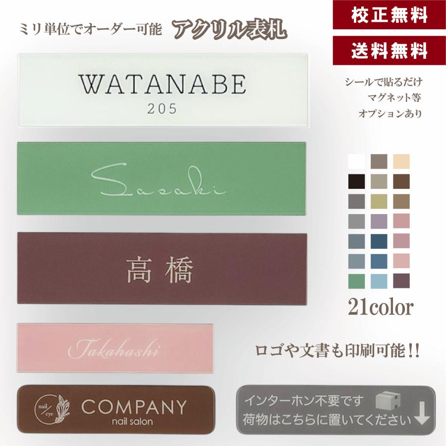 表札 戸建て マンションのアクリルプレートです。 サイズ・カラー・フォント選べます。シール、マグネットで貼り付け可能。二世帯用にも対応しています。人気のくすみカラーなどお選び頂けます。玄関 郵便ポスト 宅配ボックスにシールで貼り付け。