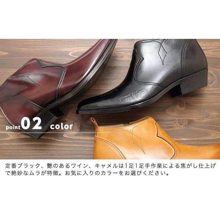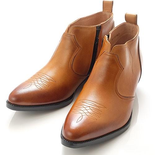 ウエスタンブーツ シークレットブーツ カウボーイスタイル 6cmアップ シークレットシューズ ヒールアップシューズ 脚長スタイル 身長アップ 内側ファスナー ブーツ カジュアル 本革 国産 日本製 送料無料 キタジマ 北島 KITAJIMA