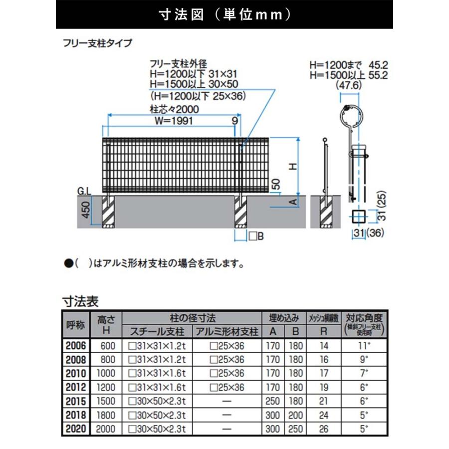 ・自由柱にフェンス本体同士をつなぐ金具が付帯します