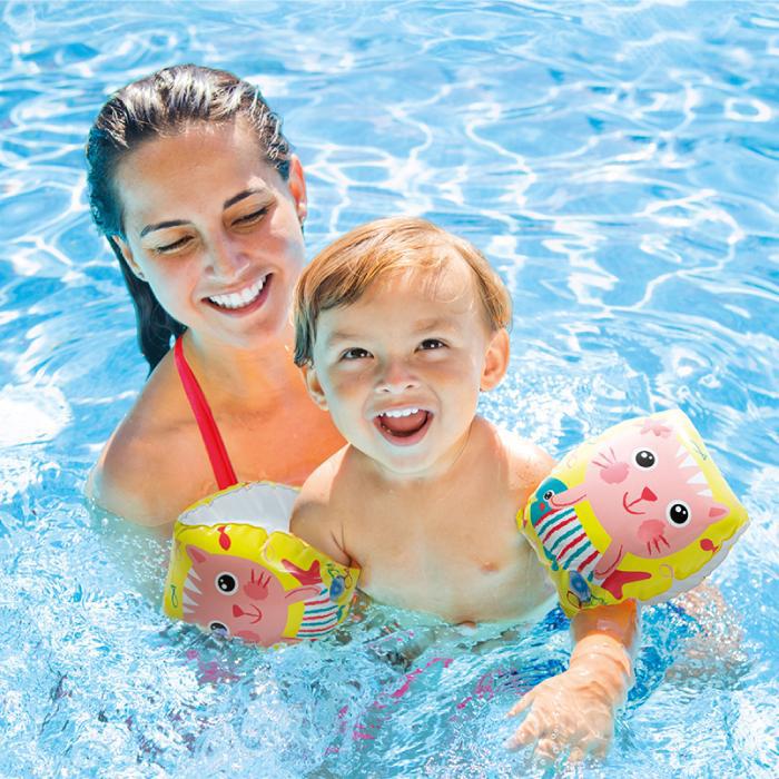 空気を入れるタイプとなり、持ち運びはコンパクトで、旅行にも最適です。6ヶ月〜3歳ぐらいのベビーサイズと、3〜6歳ぐらいのキッズサイズの2サイズからお選びいただけます。