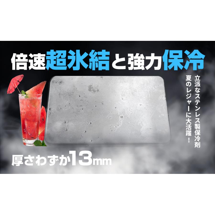 商品仕様:ステンレス製アイス保冷剤製品サイズ:176mm×116mm×13mm(長さ×幅×高さ)製品重量:約453g(1個)材質:外装-ステンレス鋼、内容物-冷凍液セット内容:1個セット/2個セット/3個セット/4個セット