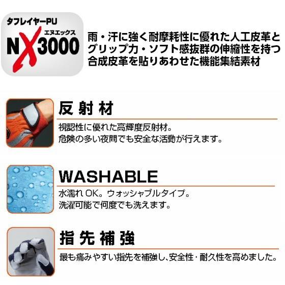 ■ファンクション(機能):指先補強・ハイグリップ・洗える・反射材付き・ナックルガード