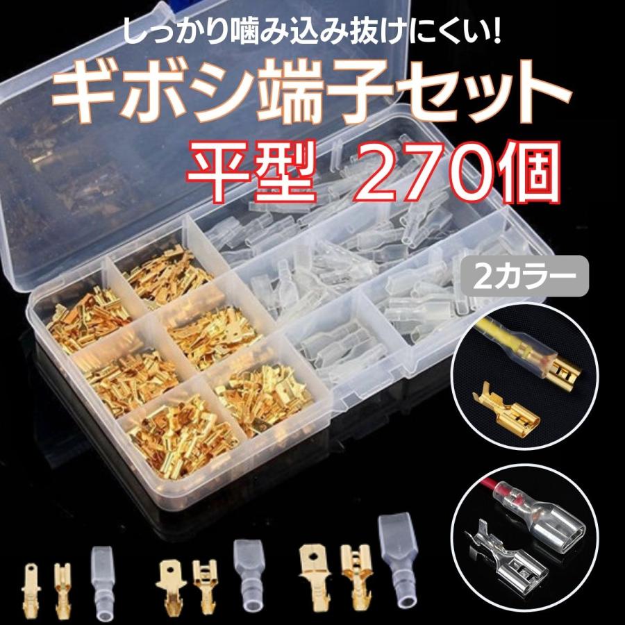 ギボシ端子 平型 270個 ギボシセット 絶縁スリーブ 配線接続 DIY 便利 車 配線 加工 圧着 オス メス 種類 サイズ 爆買