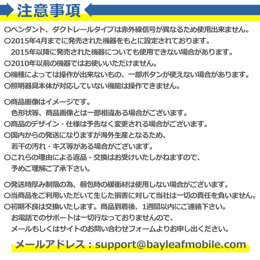 専用設計: シーリングライト専用設計で、ペンダントやダクトレールタイプの照明器具には非対応です。