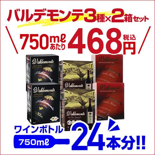 箱ワインセット 赤ワインボックス 3l (3リットル) 赤箱ワイン 3種×2箱セット バルデモンテ/ダーク/ピノ ノワール スペイン 虎 長S1 爆買 キャンペーン