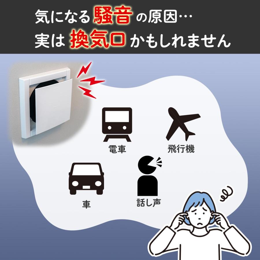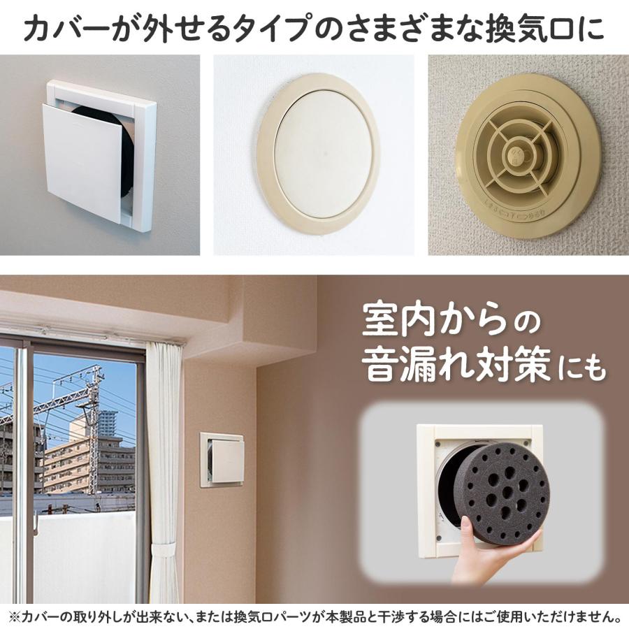換気口を通じて聞こえる電車や車の走行音・人の話し声などの騒音を軽減。穴があいているため空気は通して音は小さく。換気口に入れるだけの簡単取り付けで手軽に騒音対策を。