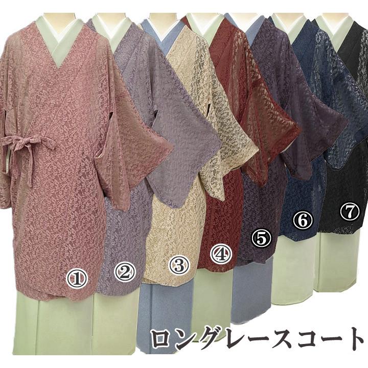 道中着 ロング レースコート 花唐草 ローズピンク 藤色 クリームベージュ ワインレッド 紫 藍紺 黒 f048