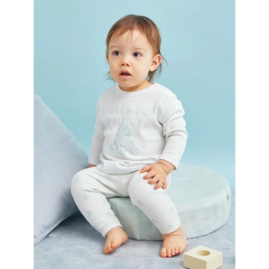 gelato piqueらしい優しいカラーリングのウェアに、子どもたちが大好きな動物のぬいぐるみ柄をあしらったカジュアルなシリーズです。