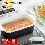 天ぷら鍋 角型 IH対応 ホーロー製 大きめ 四角い天ぷら鍋 ガス火対応 角型天ぷら鍋 揚げ鍋 ホーロー天ぷら鍋 スリム スクエア コンパクト おしゃれ