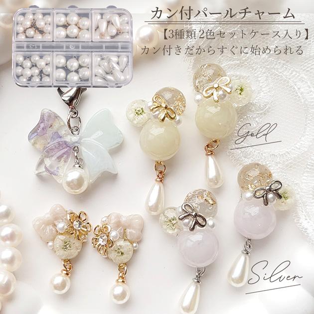 一粒で華やかにカン付き パール チャーム セット【ゴールド&シルバー 計56個入】#ゆうパケ28点可作品のクオリティを引き立てる、上品なパールチャームセットです。ころんとした丸型2サイズと、しずく型の3種類をケースに入れてセットにしました。金具カラーはゴールドとシルバーの2色入りで、作品の雰囲気に合わせて使い分けが可能です。面倒な加工不要で、そのままピアスやイヤリング、チャーム、バッグ飾りなどに大活躍!ハンドメイド初心者の方にもおすすめです♪