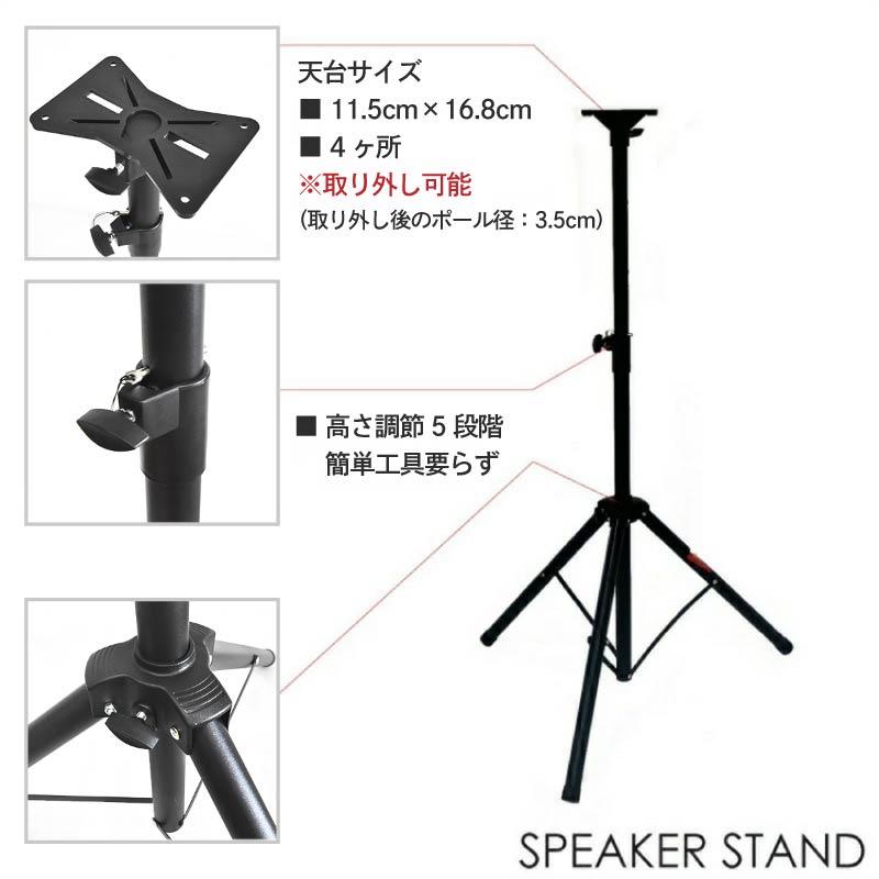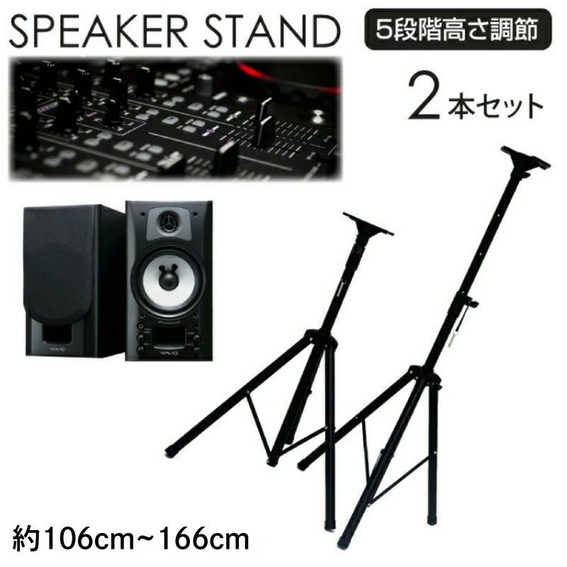 スピーカースタンド 2台セット ブラック 頑丈パイプ 耐重量 約45kg 軽量 3.6kg 太さ3.5cm 5段階 高さ調節 106cm〜166cm頑強パイプスピーカースタンド2本セット。