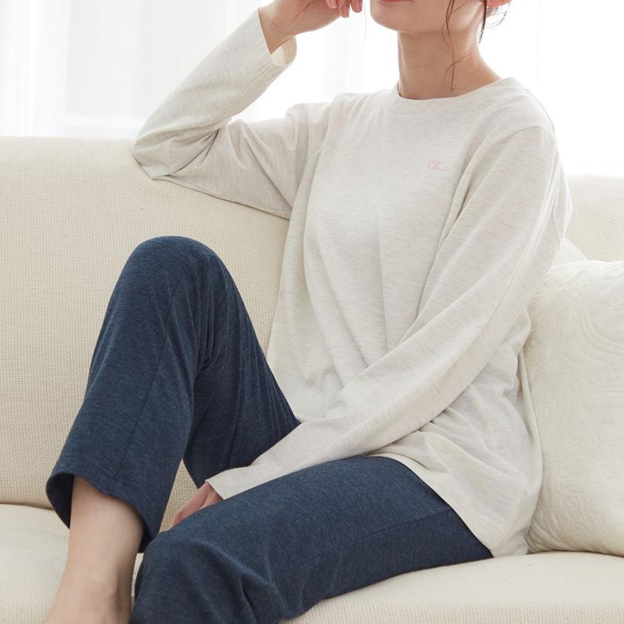伸縮性に優れた薄手のニット素材なのでリラクシングタイムにぴったりなルームウェアです。