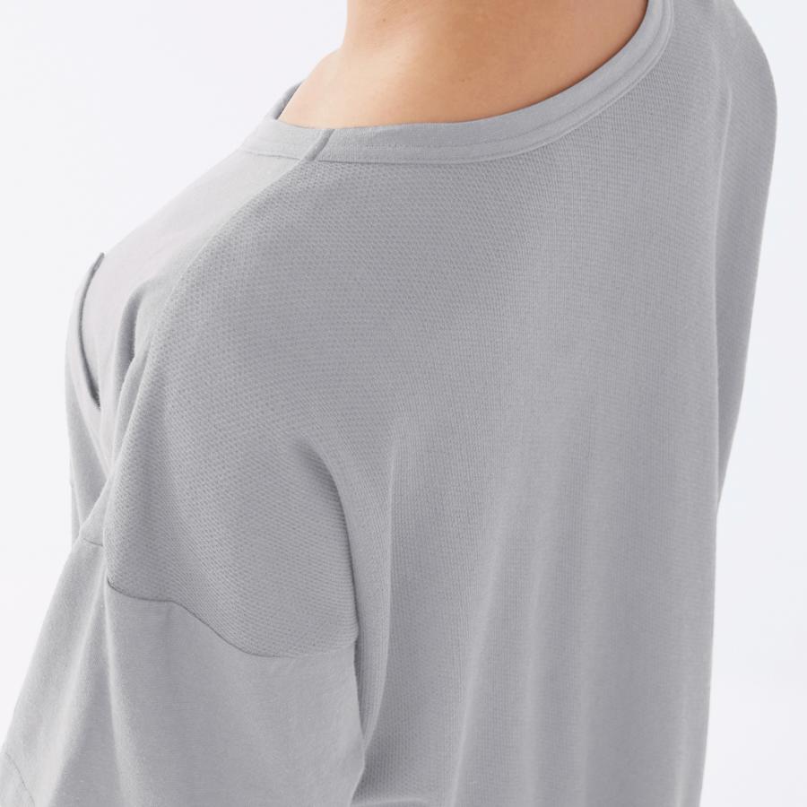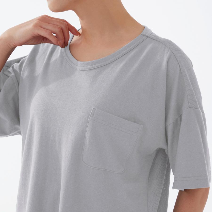 「寝るT」は、汗をかきやすく蒸れやすい後ろ身頃にアメリカ航空宇宙局(NASA)のために開発された温度調節素材「アウトラスト(R)」をメッシュにした「アウトラストメッシュ」を使用。