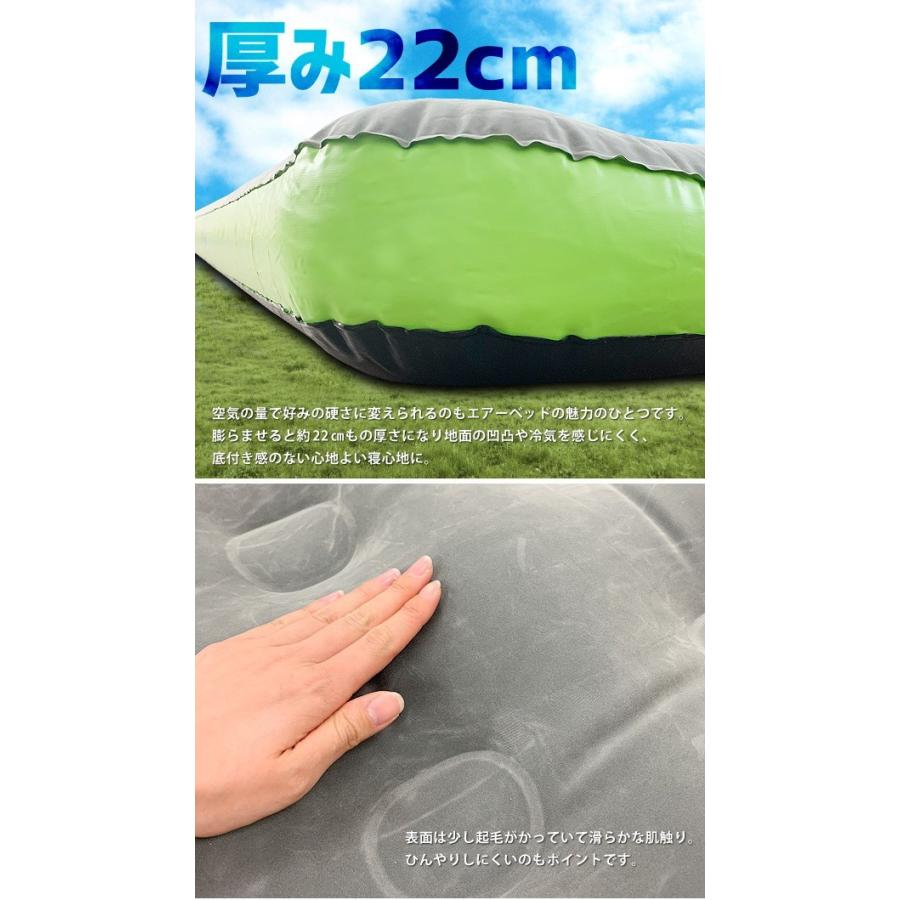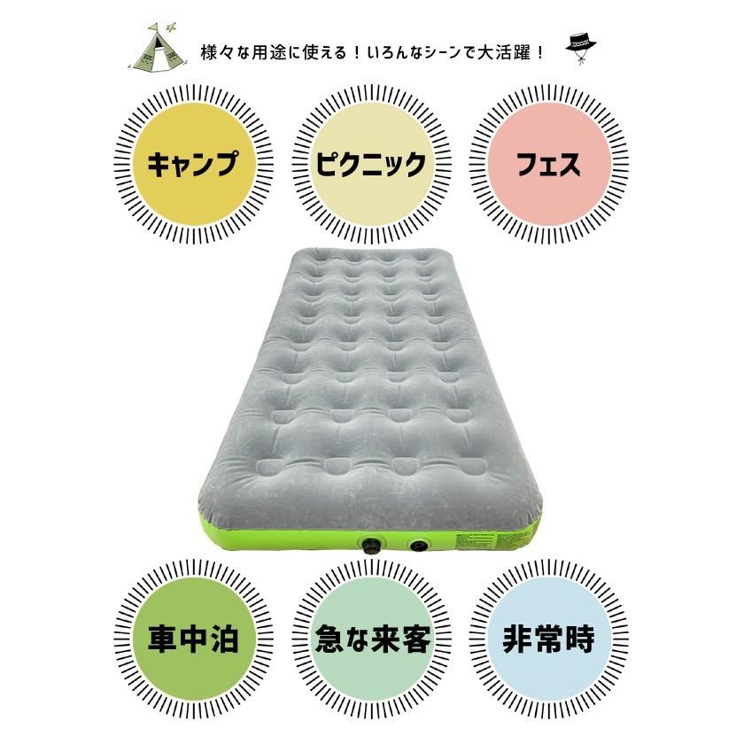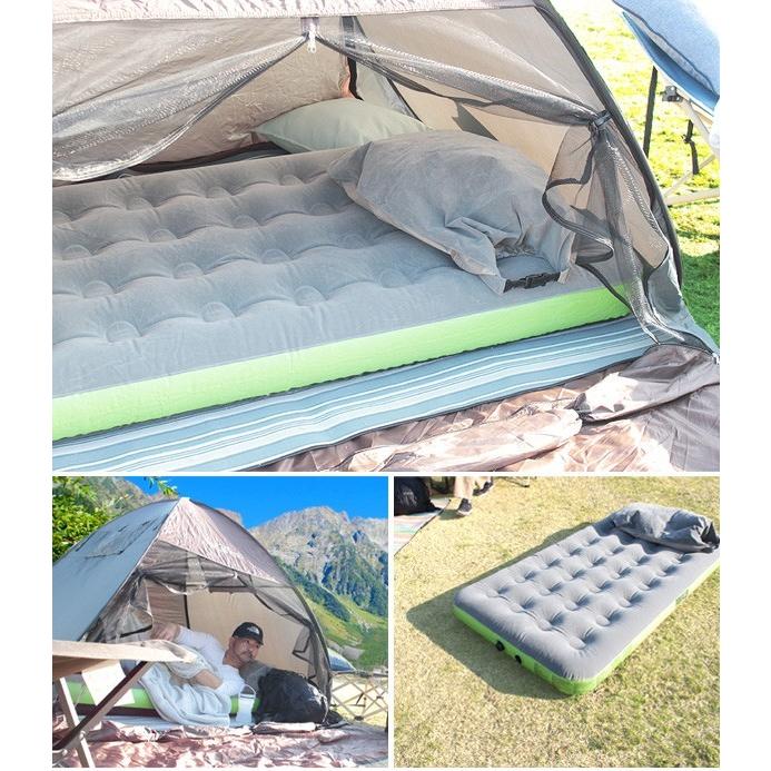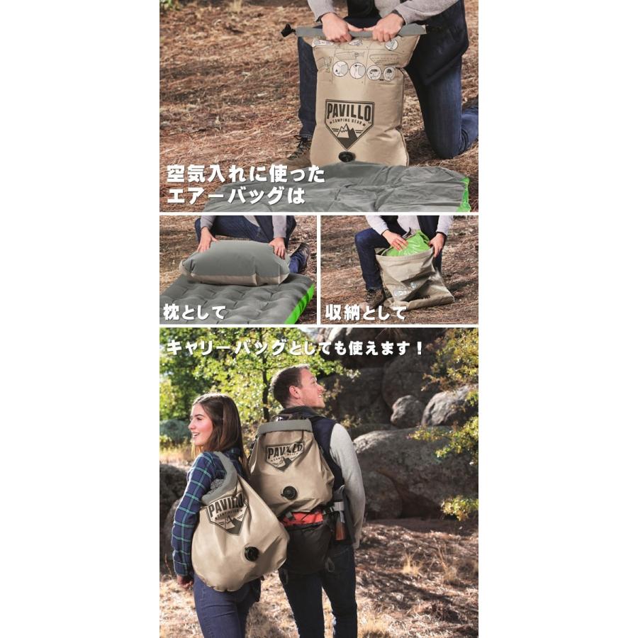 収納・枕にもなるエアーバッグで空気入れが可能!ポンプ無しで簡単にベッドが膨らみます!空気さえあれば電源がなくても使える画期的なエアーベッドです!