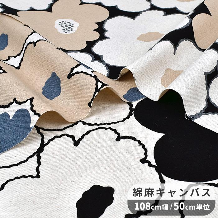 生地 布 う早この布 綿麻 キャンバス 百花 モモカ 花柄 北欧風 ナチュラル こばやし ハンドメイド 手芸 手作り かわいい おしゃれ 大きい 大柄 シンプル コットン リネン バッグ エプロン インテリア 綿麻キャンバス 商用利用可