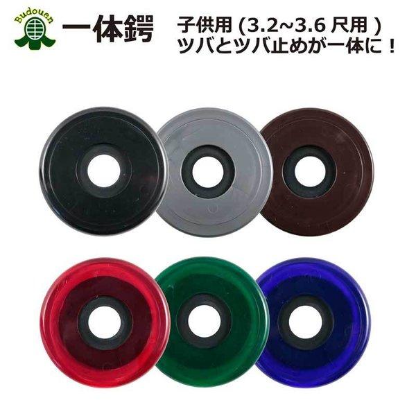 剣道 鍔 鍔止め 剣道つばセット 秀剣製 一体 子供用 黒 シルバー こげ茶 赤 緑 青 6色