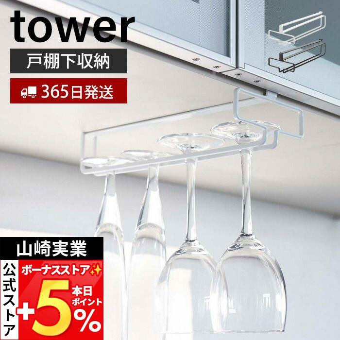 山崎実業 戸棚下ワイングラスハンガー タワー tower ワイングラスホルダー グラスハンガー シャンパン ホルダー ホワイト ブラック 2462 2463 公式