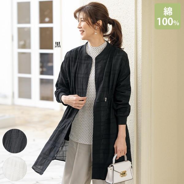 ロング丈にこなれ感が漂うジャケットは、ほのかに透ける上品な素材感。