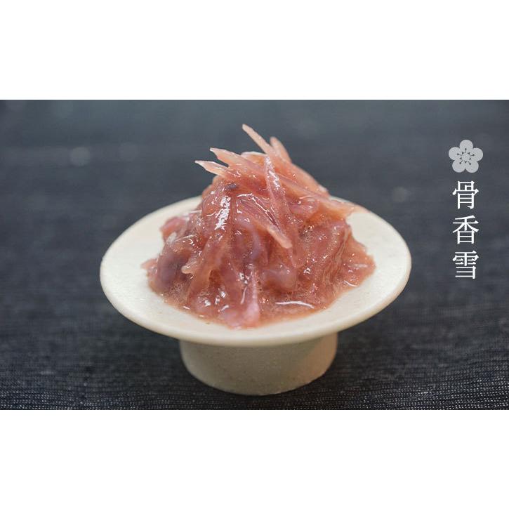 <商品詳細>【内容量】100g【賞味期限】冷凍で90日。解凍後、冷蔵で21日【お届け日】お届け日時指定可。ご注文後、4営業日以内に発送【配送】クロネコヤマト冷凍便【ギフト包装】可【原材料名】さめ軟骨(国産等)、いか軟骨(国産)、南高梅(国産)、酒盗、本みりん、食塩/調味料(アミノ酸等)、ソルビット、増粘多糖類(グァーガム)、着色料(ラック色素、しそ色素)(一部に大豆・いかを含む)【アレルギー表示】大豆、いか