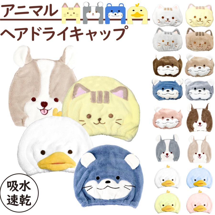 ヘアドライキャップ ヘアキャップ ヘアタオル ネコ シバイヌ カワウソ アニマル タオルキャップ 吸水 速乾 ねこ 柴犬 かわうそ レディース マイクロファイバー