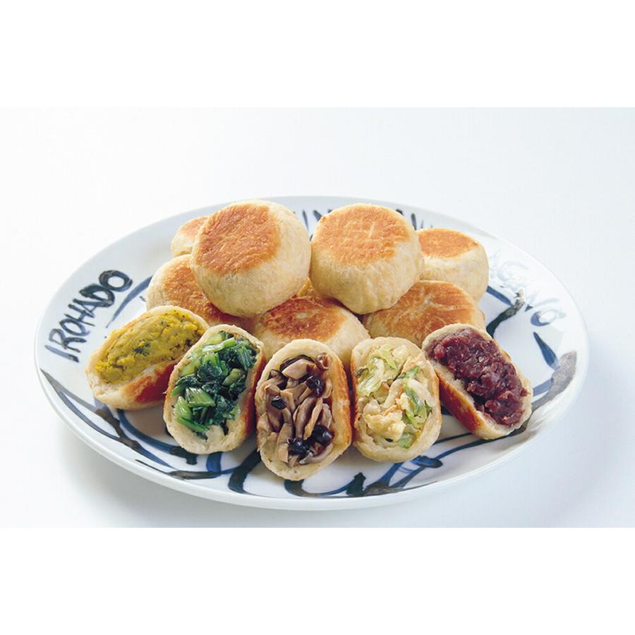 内容量:18個(野沢菜・野菜ミックス・かぼちゃ・粒あん 各3個、ねぎみそ・ぶなしめじ・切干大根 各2個)