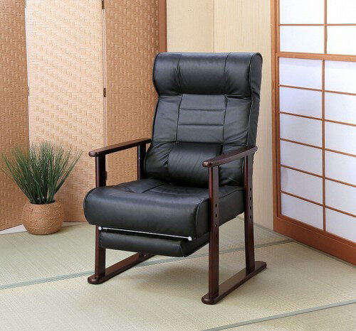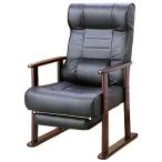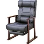 木製肘付リクライニング高座椅子 フットレスト付 ヘッドレスト 肘掛 椅子 高齢者 介護 立ち座り 和室 レバー オットマン 黒 代引不可