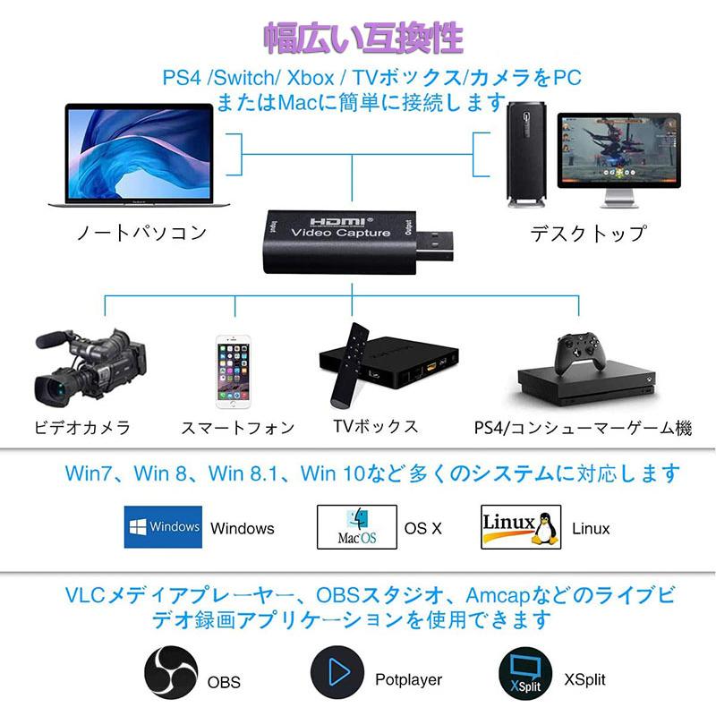 【強い互換性】PS4、Xbox、NintendoSwitch、或は他の家庭用ゲーム機のビデオ/音声をPCに表示したり、録画/ライブ配信(ライブ)したりすることができます。これで実況ゲームビデオをYouTubeや、Facebookや、Twitterなどのビデオ配信サイトに投稿できます。