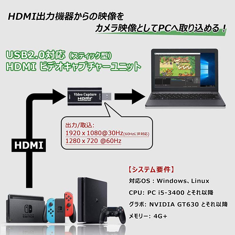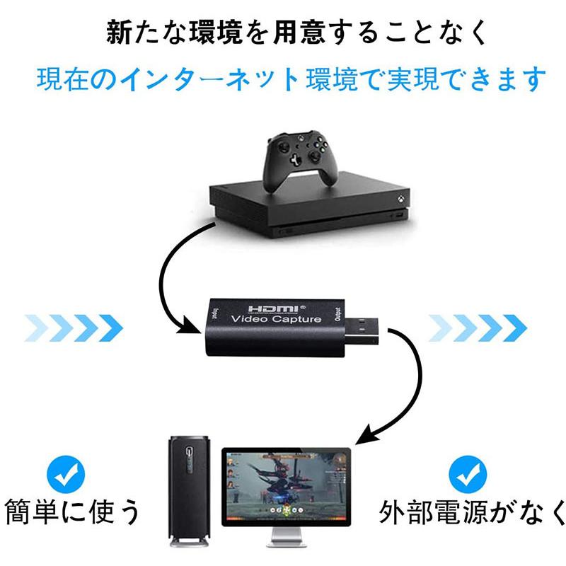 【先進なUSB2.0接続★ゼロ遅延★プラグアンドプレイ】小型の設計で、電源もドライバのインストールも要らなく、それに持ち運びが便利です。新しい環境を用意する必要がなく、今のネット環境で実現できます。HDMI入力に対応した変換ケーブルを使用することで、幅広いデバイスとの接続が可能です。