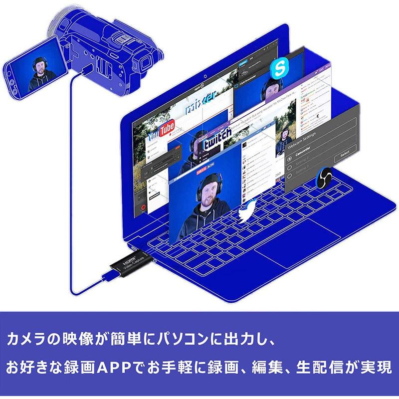 【HDMIビデオキャプチャー】HDMIキャプチャーカードはPCで高画質で録画できます。これはUVC(USBビデオクラス)に対応でき、PCとゲーム機の間に接続するだけでPCゲーム映像を簡単に録画できます。