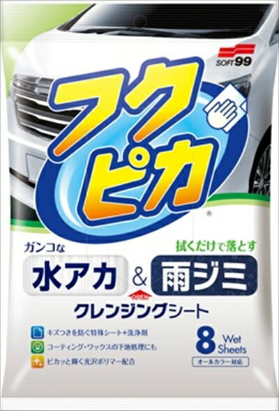 ソフト99 水アカ・雨ジミ フクピカ8枚 00464 (クレンジングシート 洗車シート ボディシート 拭くだけ 水垢 雨じみ 洗車 クリーナー 車用 カー用品 SOFT99)