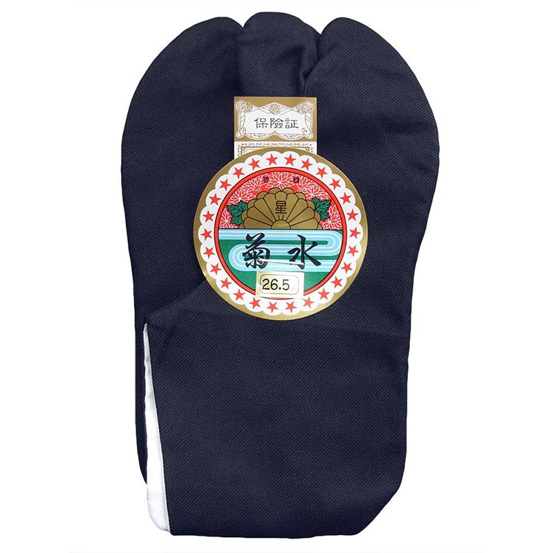 甲表は濃紺の綾織生地、底は白の石底織(いしぞこおり)生地を使用した石底足袋です。通常使用のほか、職人足袋・祭足袋としても人気があります。4枚小鉤。※パッケージは付いていない場合(中身のみ)や変る場合があります。 白の石底足袋(ns-6153t)もございます。