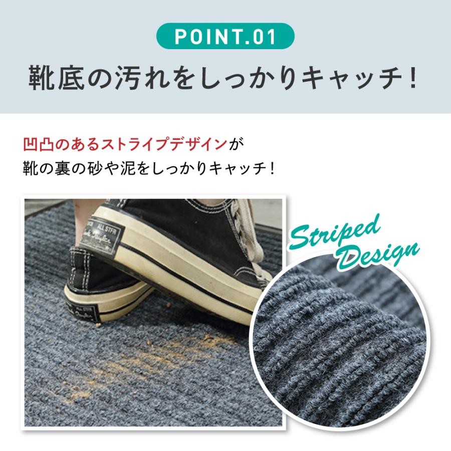 - 凹凸のあるストライプデザインが靴の裏の砂や泥をしっかりキャッチ。