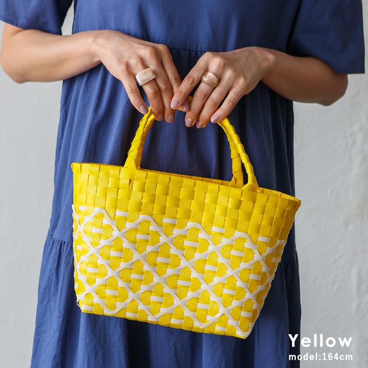 ポリプロピレン素材のテープを、ひとつひとつ手作りで作られたメキシコの手工芸品の楽しさ、美しさが魅力です。