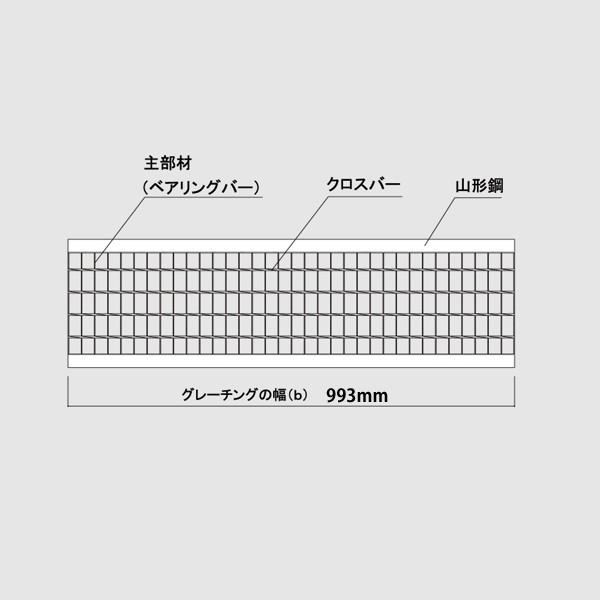 ・グレーチング寸法:225×993×19mm(長さa×幅b×高さh)