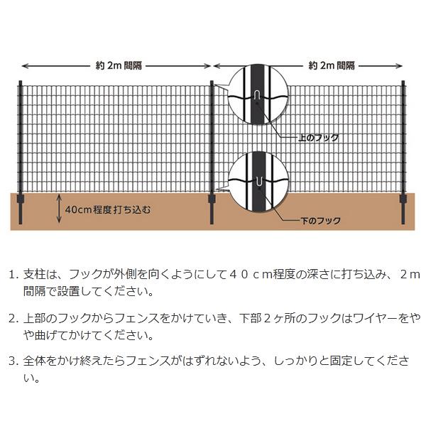 金網ネットを支柱のフックに引っかけるだけの簡単設置。