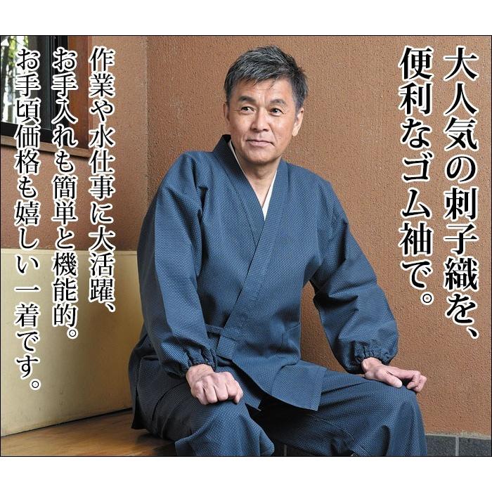 ●大人気の刺子織にゴム袖登場!より作務に特化した作務衣に。