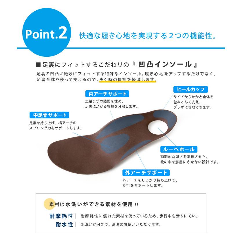 インソールが足の凹凸にフィットし、