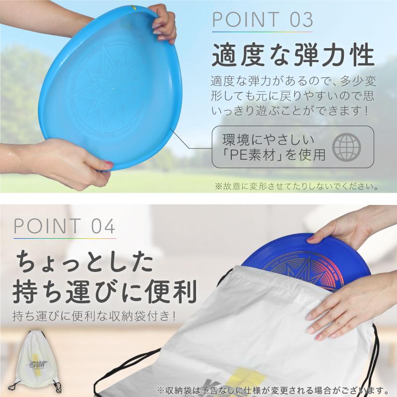 世界フライングディスク連盟、USAアルティメットディスク協会に承認されたスポーツディスクです。本格派のアルティメット競技用のスポーツディスクで適度な重さで安定した飛行が可能です!競技用の他、家族皆で遊ぶこともできます。適度な弾力があり、人間工学に基づいて設計されており握りやすくなっています。中でもナイトグローは光を当てた後は暗闇で少し光り、UVは紫外線に当たると白から紫に色が変わる特徴があります♪デザインもオシャレでカッコイイ!カラーバリエーションも豊富です♪