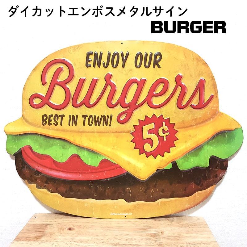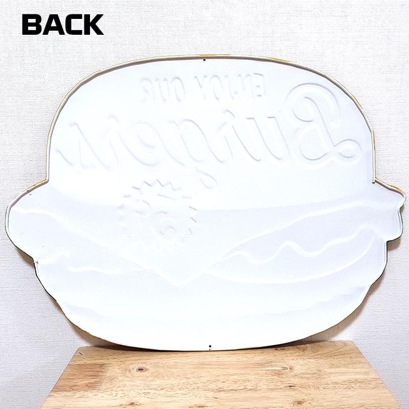 ハンバーガーの形がそのままデザインされた大きなブリキ看板です!