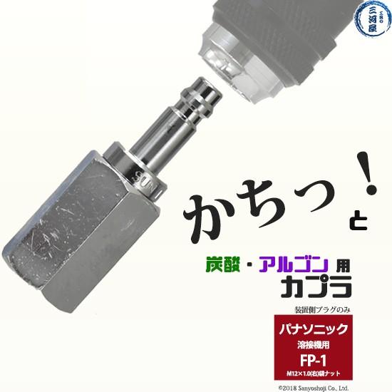 阪口製作所製の溶接ガス(炭酸・アルゴン)用の溶接機(送給装置側)のワンタッチ継手のFP-1 プラグ×取付ネジはM12×1.0(右)袋ナットでパナソニックの溶接機の仕様になります。※プラグのみの商品です。
