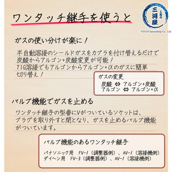 FV(流量計用ソケット)及びFP(送給装置側プラグ)はダイヘン規格とパナソニック規格の2種類のネジがあります。