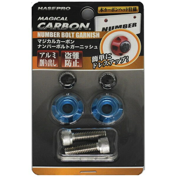【期間限定po10】BGA-1BLU マジカルカーボン ナンバーボルトガーニッシュ(2ピース) ブルー ハセプロ ナンバープレートの盗難防止 ゆうパケット発送 コンビニ受取不可