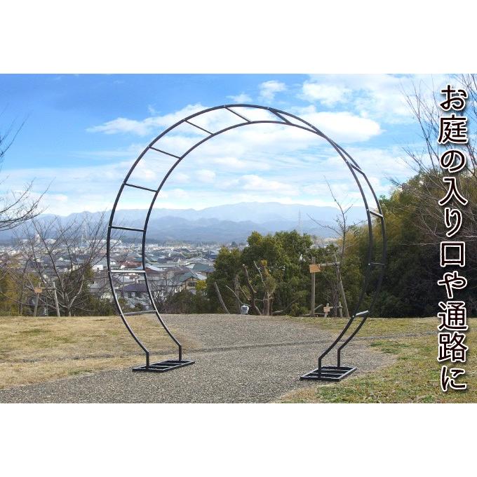 お庭を彩るガーデンアーチ。丸くて可愛いデザインのアーチです。