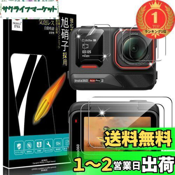【楽天ランキング1位獲得】PRODELI For Insta360 Ace Pro 2 専用 ガラスフィルム 衝撃吸収 9H硬度 飛散防止 気泡ゼロ …