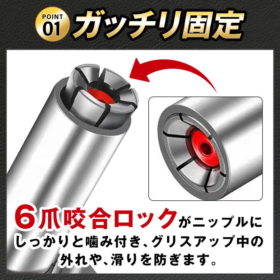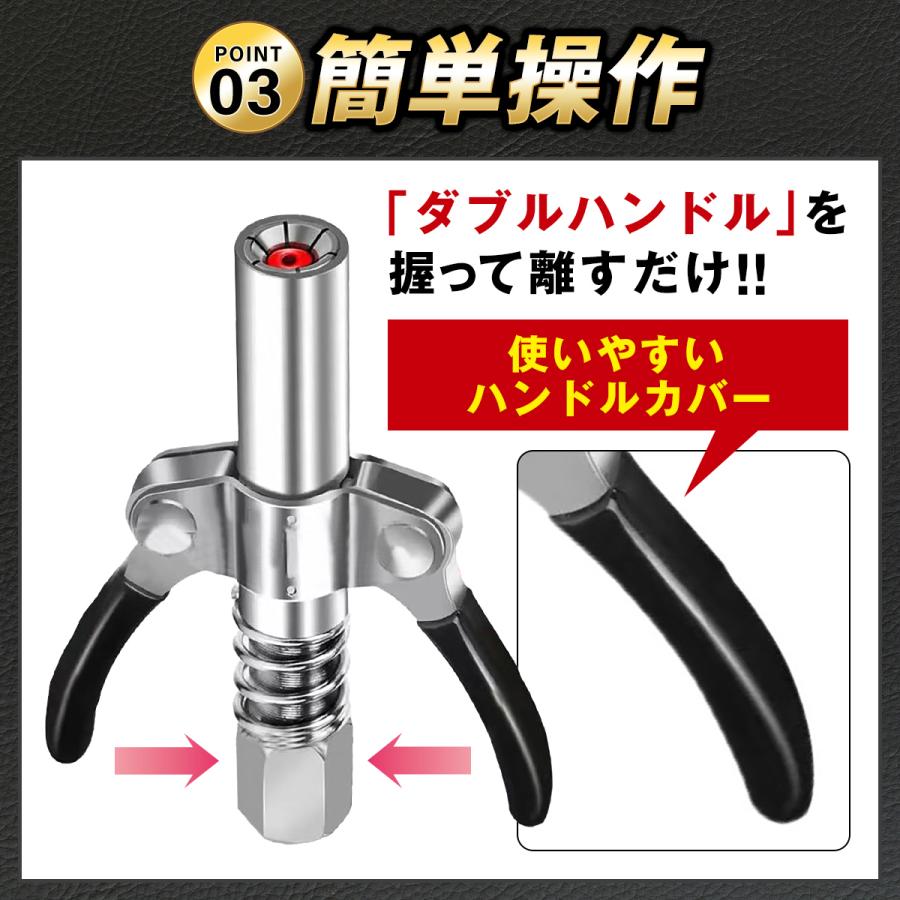 握りやすいダブルハンドル仕様で作業効率も大幅アップ!手動、電動、空気圧のグリースガンに対応しており、便利さもバツグンです!