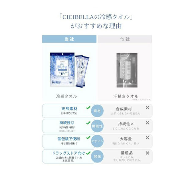 |保冷|冷却|暑さ対策|ひんやり|クール|汗対策|スポーツ観戦|ネッククーラー|夏|熱中症|冷感タオル|冷却|氷|汗拭きシート|コットン|天然素材|コットン100%|CICIBELLA|シシベラ|